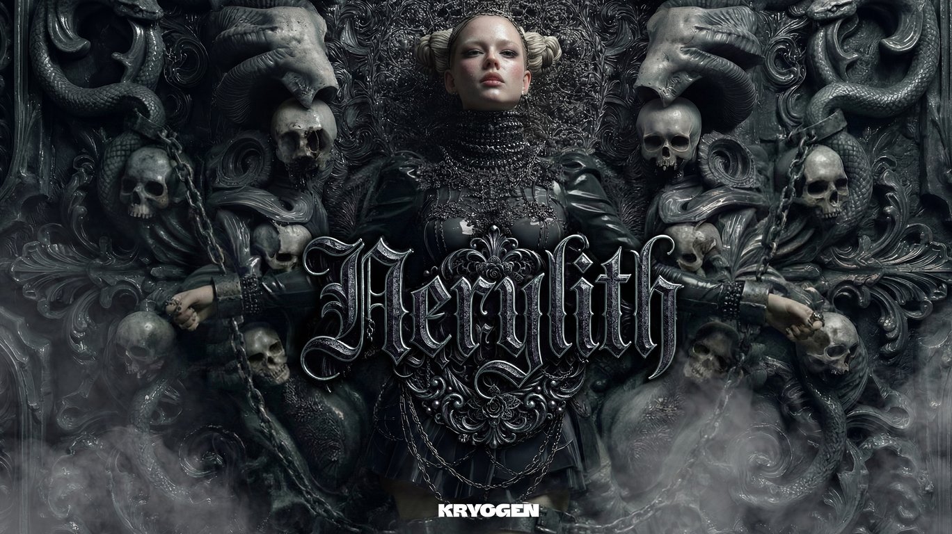 This scene captures the tormented soul of Nerylith, trapped in a hyper-realistic dark gothic electro-baroque universe. Surrounded by a monumental cathedral of skulls and obsidian, she screams against the artificial light. A fusion of aggressive Punk, Rap, and Metal aesthetics in a desolate, cinematic nightmare.